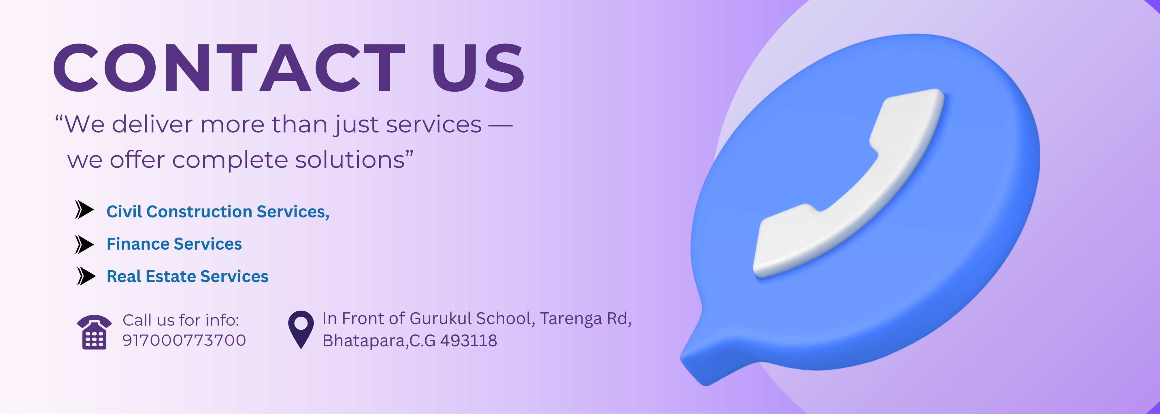 Address: Infront of gurukul school, tarenga road, bhatapara, C.G. 493118